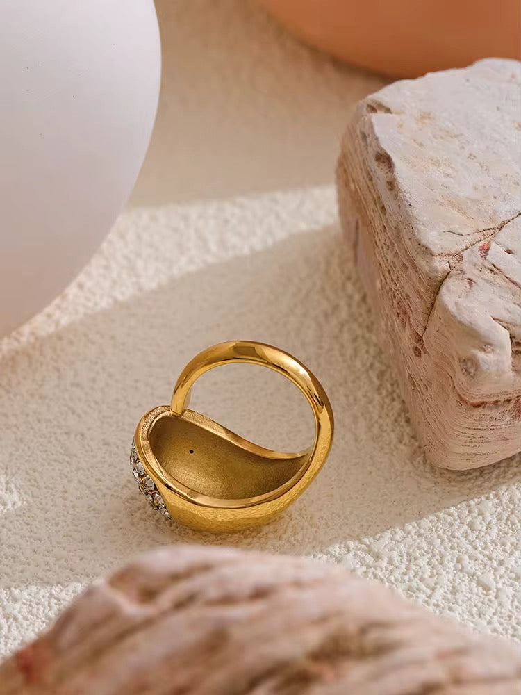 Rhea is statement solid ring with mini cubic zirconias around,